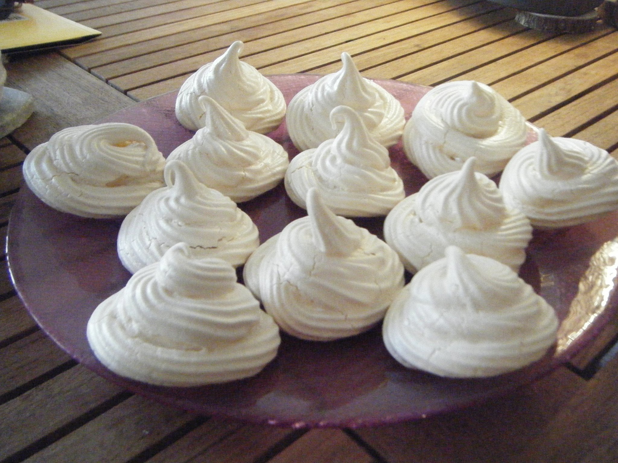 - Enfournez pour 40 minutes à 120 °, et surveillez ensuite : vous pouvez les laisser jusqu’à 50 minutes. J’aime bien quand les meringues deviennent légèrement roses dorées et qu’elles restent fondantes au cœur / Bake for 40 minutes at 120°C, and watch for up to 50 minutes. I like when meringues turn golden pink and remain melting at heart.