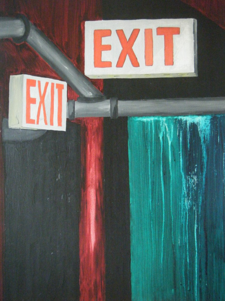 Avant une nouvelle recette, des photos prises au crépuscule et deux peintures faites il y a quelques années : le sous-sol du Rothko bar à New-York, et les escaliers de secours de l’Empire State Building / Before a new recipe, some pictures that I have taken, 2 roads at dusk, and some paintings made several years ago : the Rothko Bar in New York and the exit staircase of the Empire State Building:)