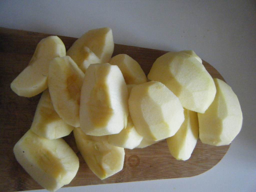 - Épluchez vos pommes et coupez les en 4, voir en 2 si vous voulez de gros morceaux