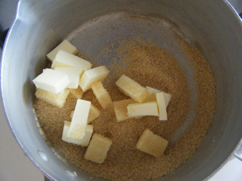 - Take a saucepan, melt the butter, add the brown sugar and let it melt for a caramel (you can also make a caramel without butter)