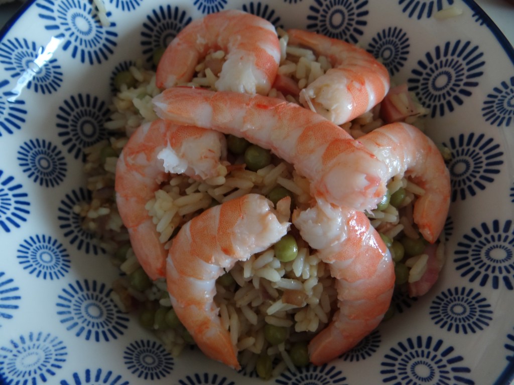 - Arrange in a pretty container and place the shrimp on top of the Cantonese rice. Enjoy without delay