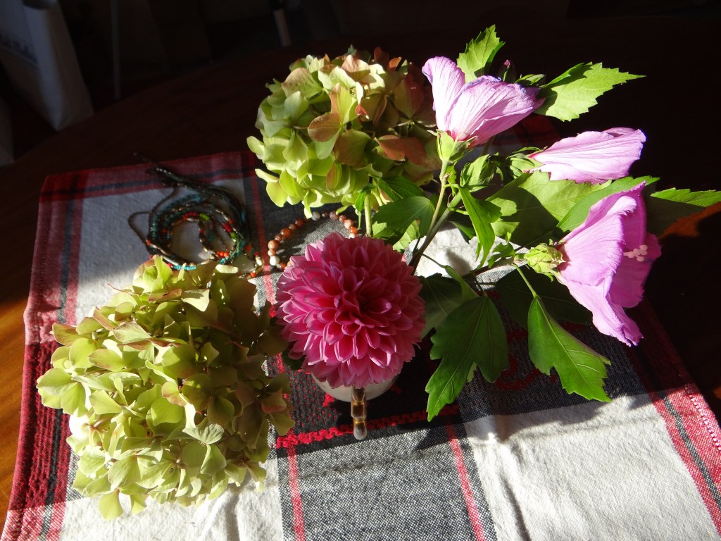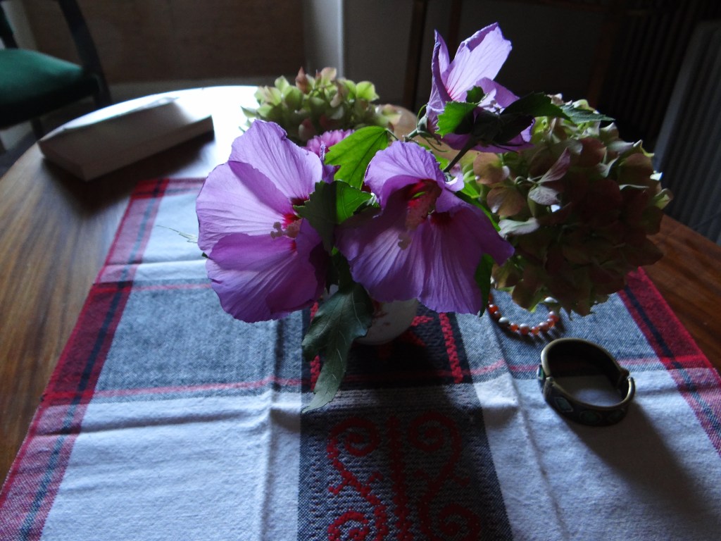 The light had changed, shivering through the window, enlightening the hydrangeas and the dahlia. Summer was cold, told the spirits of the old house, yet eager to see us work in the garden.