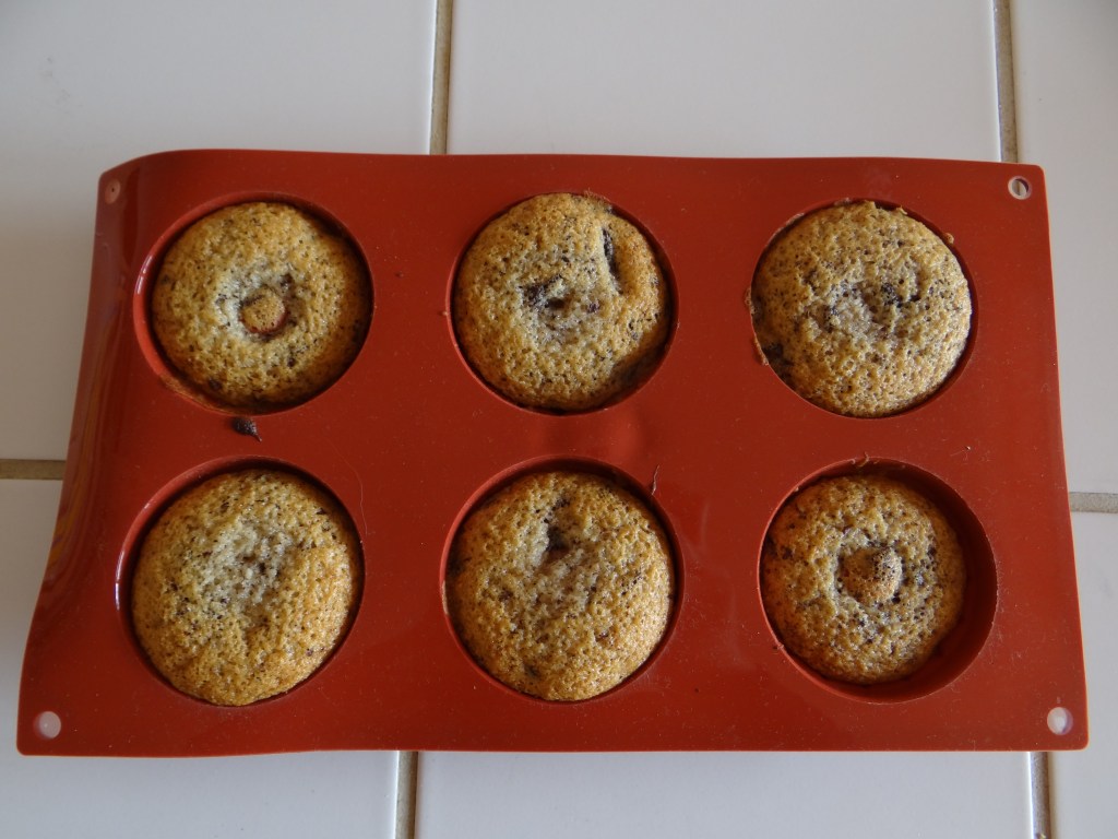 - Dans une casserole, faire fondre le beurre. Dans un récipient, mélanger la poudre d’amandes (ou de noisettes), la farine, le sucre glace, la levure et le sel (du côté opposé à la levure). Mélanger. Verser délicatement les 3 blancs d’œufs tempérés avec le beurre fondu et les pépites de chocolat dans le récipient. Verser la préparation dans des mini moules à kougloff en silicone (vous pouvez mettre un peu de matière grasse, j’ai eu du mal à les décoller sans). Faire cuire 18 minutes environ dans le four préchauffé à 180 degrés.